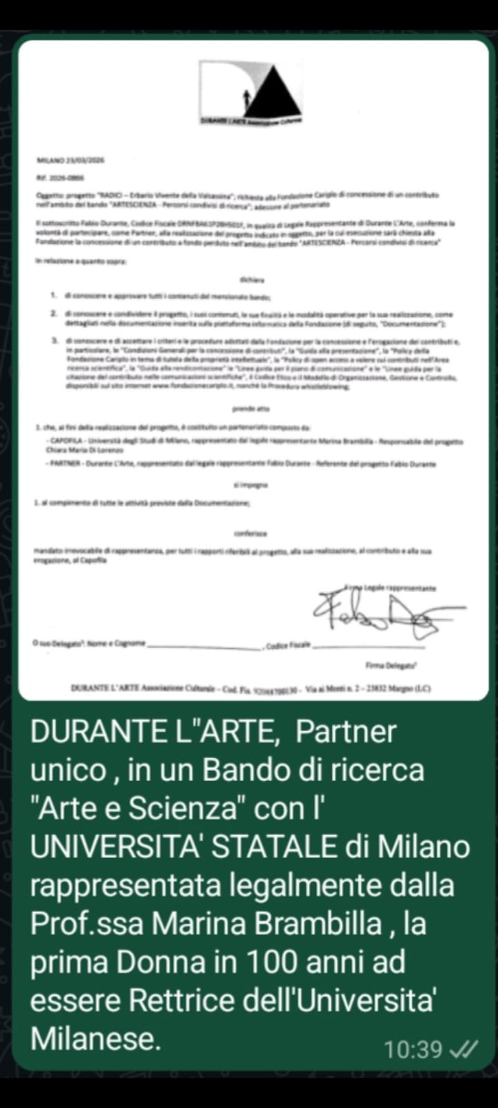 Sono felice che la mia passione per l'Arte si sia trasformata nel primo evento a "memoria d'uomo" che riesca ad unire tutti i Comuni divisi precedentemente